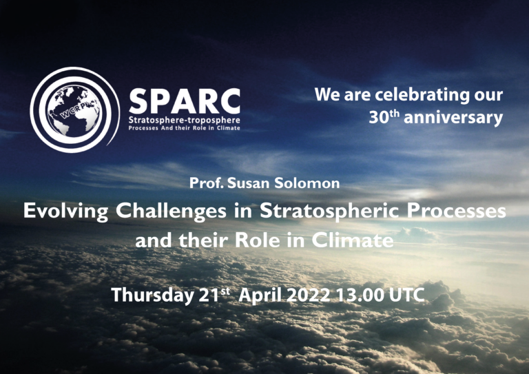 Our host for the webinar on 21st April 2022 was Prof. Susan Solomon from the Department of Earth, Atmospheric, and Planetary Sciences, Massachusetts Institute of Technology (MIT). She gave a presentation on “Evolving Challenges in Stratospheric Processes and their Role in Climate”, taking us through some history of how our science has experienced a succession of things that have challenged our understanding and how the science community rose to the challenges.