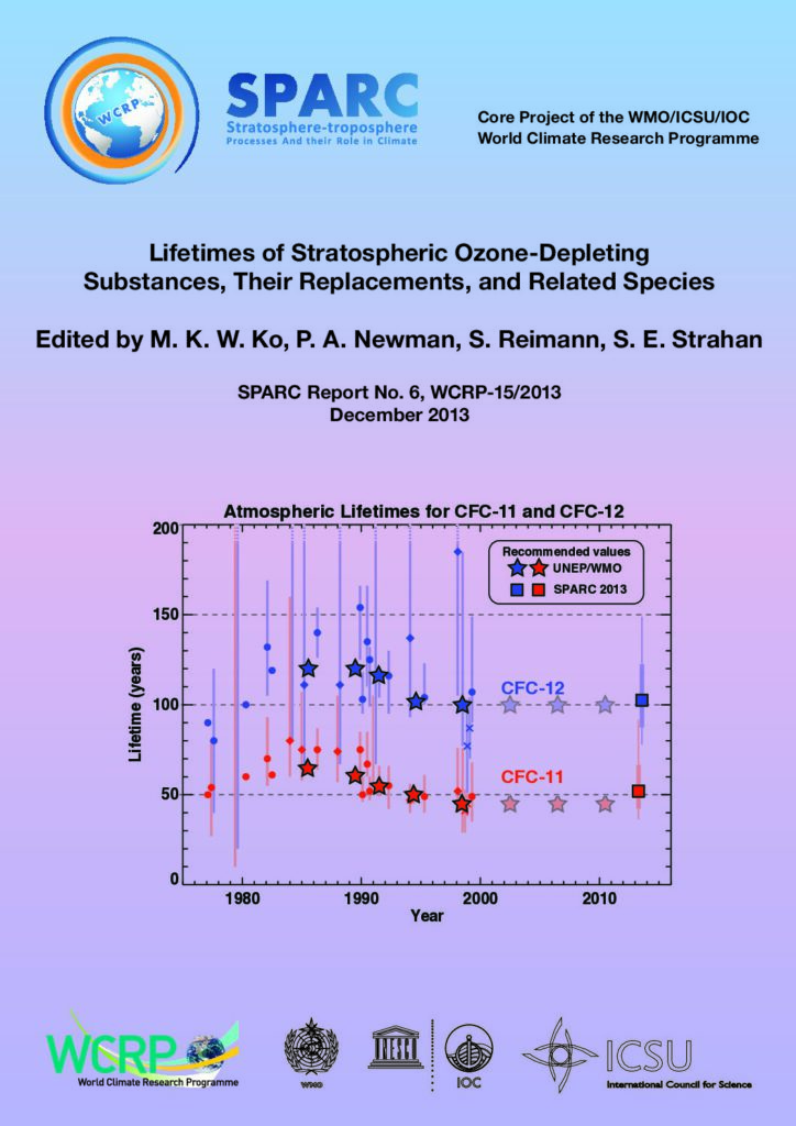 SPARC, 2013: SPARC Report on the Lifetimes of Stratospheric Ozone-Deleting Substances, Their Replacements, and Related Species. M.K.W. Ko, P.A. Newman, S. Reimann, S.E. Strahan (Eds.), SPARC Report No. 6, WCRP-15/2013, available at www.aparc-climate.org/publications/